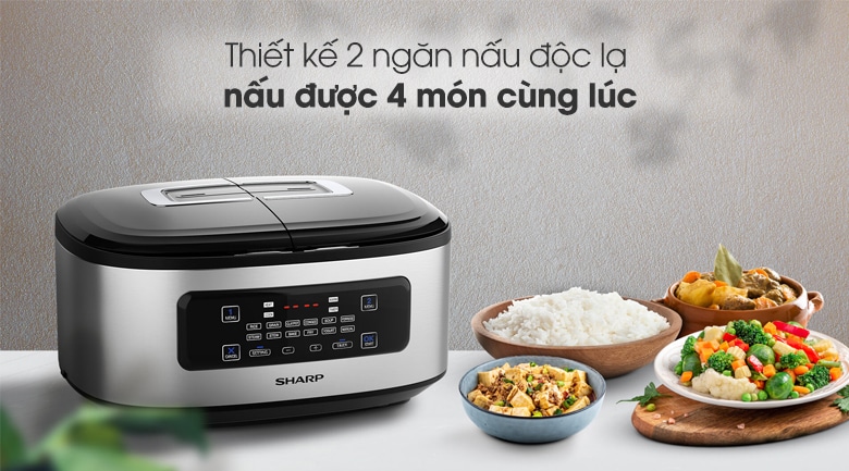 Nồi cơm điện tử 2 ngăn đa năng Sharp 1.8 lít KN-TC50VN-SL Bạc giúp việc nấu nhiều món ăn cùng lúc trở nên đơn giản rất nhiều, đặc biệt phù hợp cho sinh viên, cặp vợ chồng bận rộn muốn tiết kiệm thời gian nấu nướng.