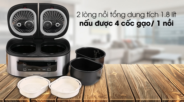 Nồi cơm 2 ngăn đa năng Sharp 1.8 lít KN-TC50VN-SL Bạc
