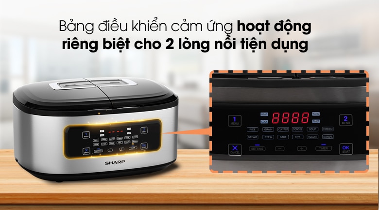 Bảng điều khiển Tiếng Việt - Nồi cơm điện tử Sharp 1.8 lít (0.9 lít x 2) KN-TC50VN-SL