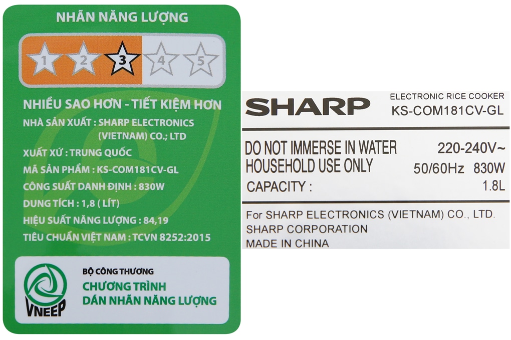 Nồi cơm điện tử Sharp 1.8 lít KS-COM181CV-GL, sản phẩm gia dụng đa năng, nấu ăn dễ dàng, nhiều món cho gia đình thưởng thức mỗi ngày.